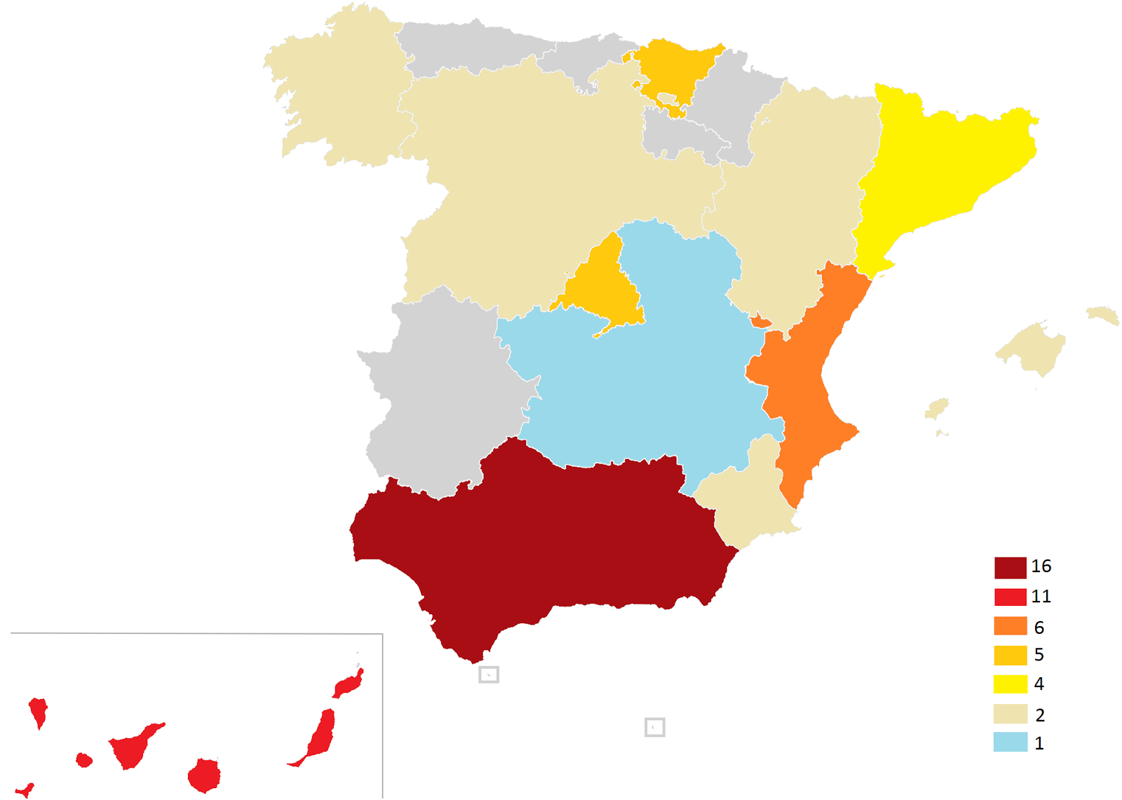 turistas, un 17,2% del total, con un repute del 0,9%, y Andalucía que con 4,4